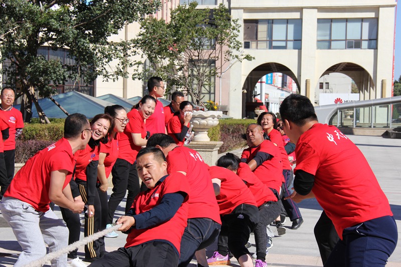 伴隨著于總一聲令下,比賽正式開始。本屆運(yùn)動(dòng)會(huì)共設(shè)5個(gè)團(tuán)體項(xiàng)目,包括拔河、二人三足跑、齊心協(xié)力、海底撈月和激情傳遞。首先進(jìn)行的是拔河比賽,各代表隊(duì)分別派出10名選手參賽。隨著裁判員哨音響起,鑼鼓聲、吶喊聲響成一片,每一組比賽都在愉快的笑聲和遺憾聲中結(jié)束。經(jīng)過(guò)激烈角逐,萬(wàn)豪酒店和機(jī)關(guān)二隊(duì)進(jìn)入了最后的決賽。萬(wàn)豪酒店是上屆拔河比賽的冠軍,機(jī)關(guān)二隊(duì)的實(shí)力也是非常強(qiáng)勁,每一局比賽雙方都會(huì)反復(fù)拉鋸,在一片吶喊和力量的較量后,最后,萬(wàn)豪酒店取得拔河賽冠軍,衛(wèi)冕成功。
