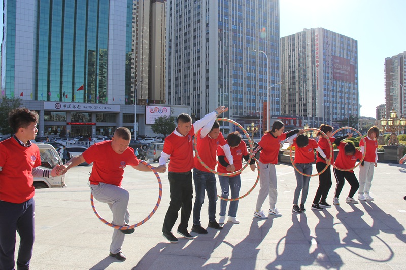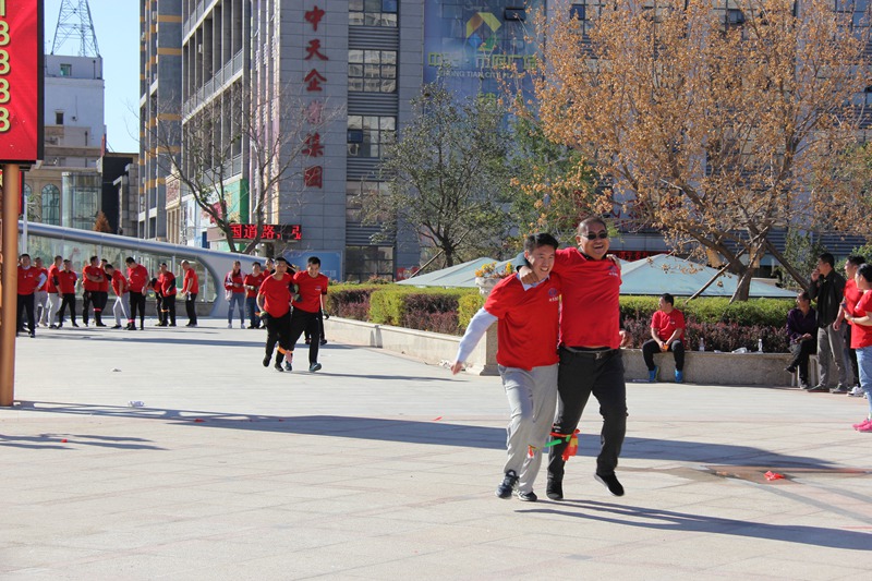 “激情傳遞”每隊(duì)10人。比賽開始前,所有隊(duì)員手拉手平舉排成一隊(duì),從一端一個(gè)人的手中將第一個(gè)呼啦圈進(jìn)行依次專遞,直至第5個(gè)呼啦圈傳遞到隊(duì)伍的最后一個(gè)人手中。本項(xiàng)目考驗(yàn)的是團(tuán)員之間團(tuán)結(jié)協(xié)作的能力,天運(yùn)(嘉晨)公司公司以絕對(duì)的優(yōu)勢(shì)取得第一名,集團(tuán)一隊(duì)緊隨其后,取得第二名。