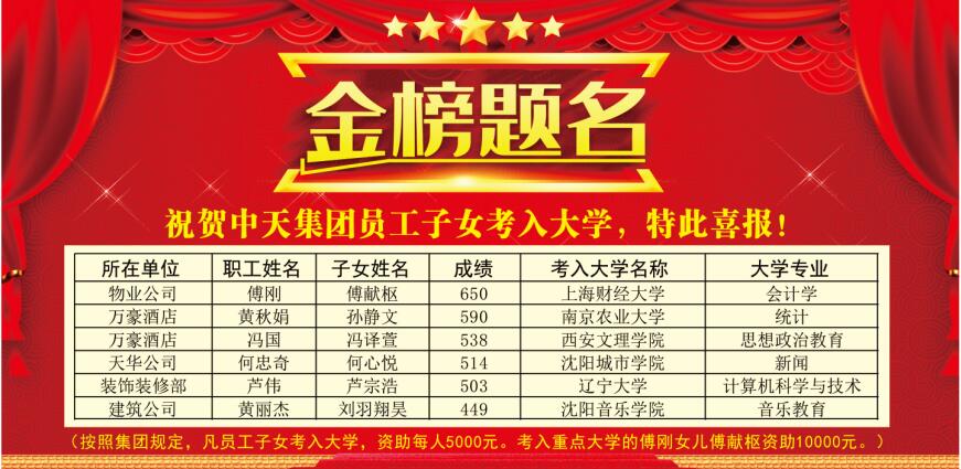 恭賀集團(tuán)員工子女金榜題名