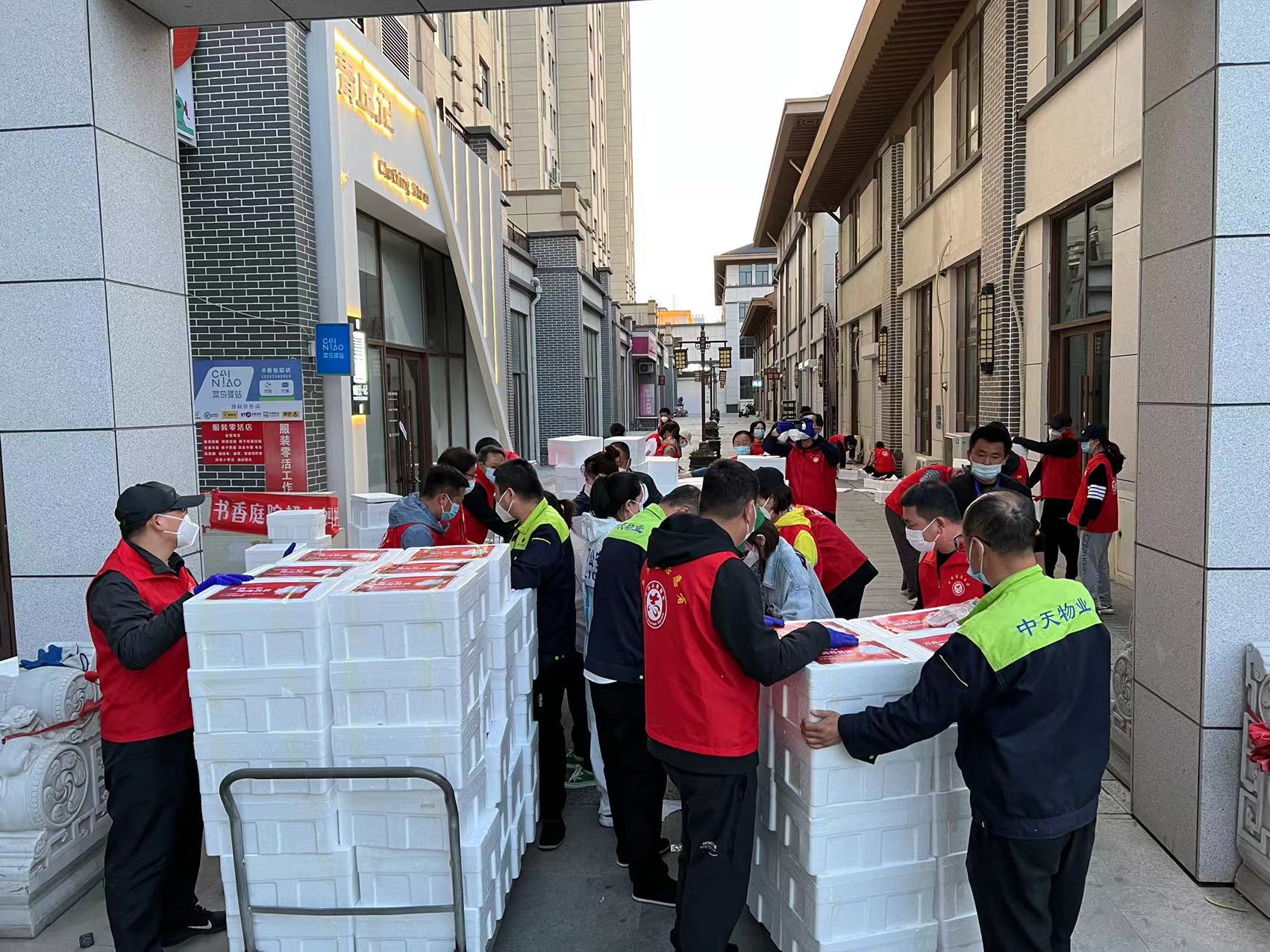自全市實施社會面靜態(tài)管理以來,面對封控嚴格、采購不易的困難情況,如何能讓廣大封閉在家的業(yè)主生活的更踏實、更安心,如何能為廣大中天的家人們提供更好的服務(wù),成為中天物業(yè)人的頭等大事。5月14日,經(jīng)過多方溝通協(xié)調(diào),中天物業(yè)采購了大量的肉蛋蔬菜,為居住在中天旗下物業(yè)的每戶送上一份包含豬肉、雞蛋、黃瓜、豆角、茄子、蘑菇、辣椒、土豆、蒜薹、餃子共10種物資的禮包。從15日起,10輛物資配送車先后去往中天·御景華庭、中天壹品、中天尚品、中天·君臨天下、中天·桃花源、中天·御景灣、中天·御荷苑、中天·書香庭院、中天·英倫名邸,中天國際,中天大廈等11個營口住宅小區(qū),由物業(yè)員工和業(yè)主志愿者進行分裝,逐棟樓通知領(lǐng)取,將溫暖送到4萬多業(yè)主手中。