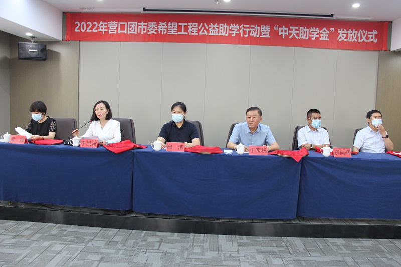 8月9日上午,2022年營口市希望工程公益助學活動暨“中天助學金”發(fā)放儀式在中天集團總部會議室舉行。營口市團市委書記白潔,中天企業(yè)集團董事長于寶權、總裁于洪波,營口市教育局副局長柳向暉,營口市慈善總會副會長黃渤,營口市團市委副書記梁嫚以及獲得資助的31名學生,出席了本次發(fā)放儀式。