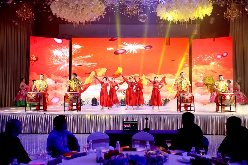 晚會(huì)后舉辦了盛大的慶功酒宴,大家歡聚一堂,共享中天的盛會(huì)。