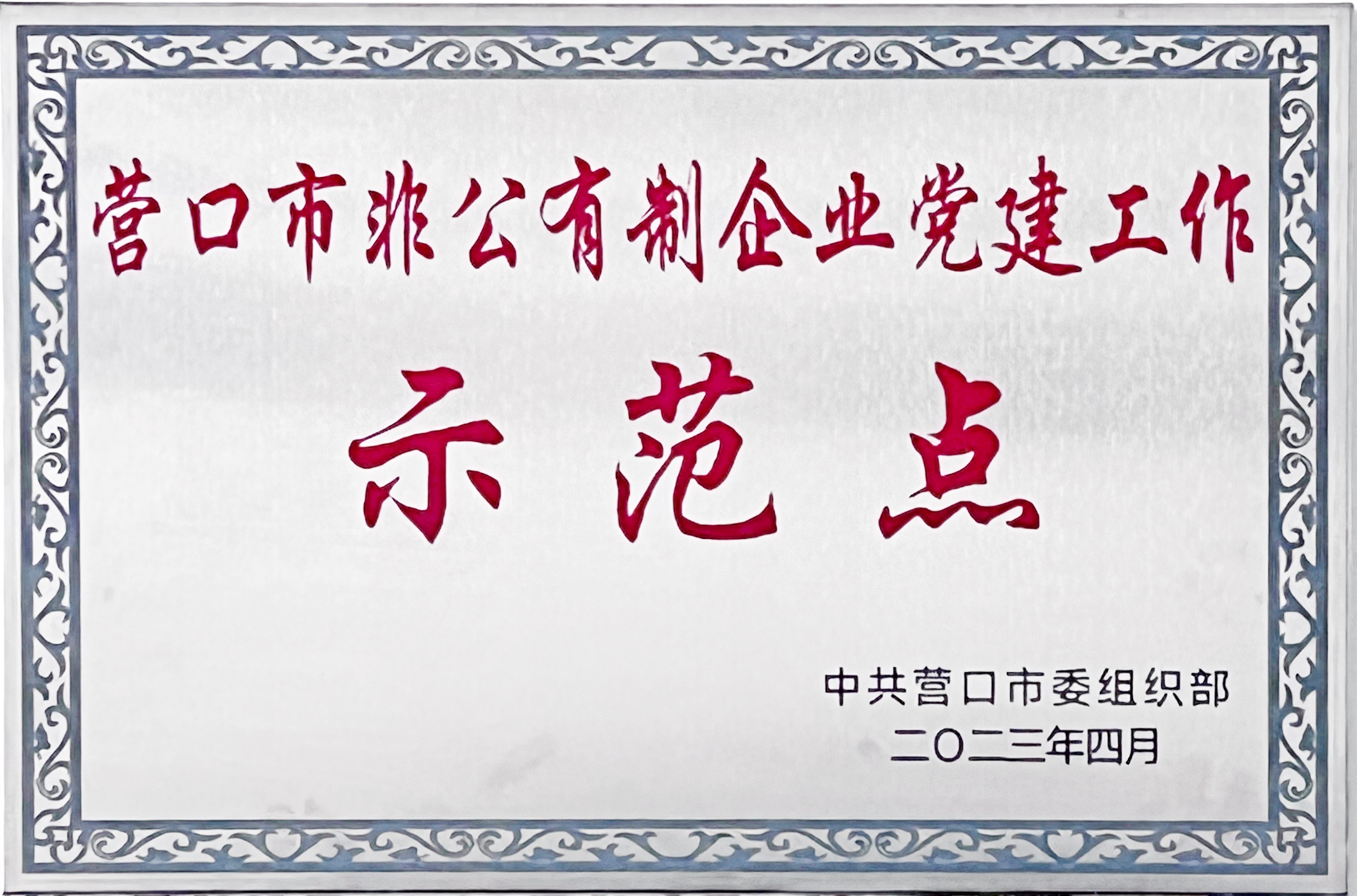 2023年4月28日,營口市委組織部在營口市社會(huì)組織黨群活動(dòng)服務(wù)中心,組織召開營口市委非公有制經(jīng)濟(jì)組織和社會(huì)組織工作委員會(huì)全體(擴(kuò)大)會(huì)議。會(huì)上為二十家非公企業(yè)黨組織頒發(fā)“營口市五星級”黨組織牌匾,確定六家非公企業(yè)為黨建工作“示范點(diǎn)”并頒發(fā)牌匾。中天集團(tuán)黨支部獲得“營口市五星級”黨組織、黨建工作“示范點(diǎn)”兩項(xiàng)榮譽(yù)。集團(tuán)黨支部書記許文明代表黨支部上臺(tái)領(lǐng)取“營口市五星級”黨組織和黨建工作“示范點(diǎn)”牌匾。