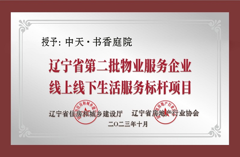 5、營口中天·書香庭院項目獲“省物業(yè)服務(wù)標(biāo)桿項目”稱號