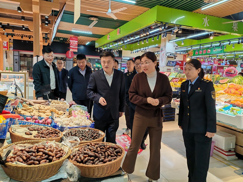 9月30日上午,營口市市場監(jiān)管局黨組書記、局長欒勇帶隊到農貿公司桃花源店,實地檢查督導節(jié)前市場經營、食品安全、安全生產等工作。