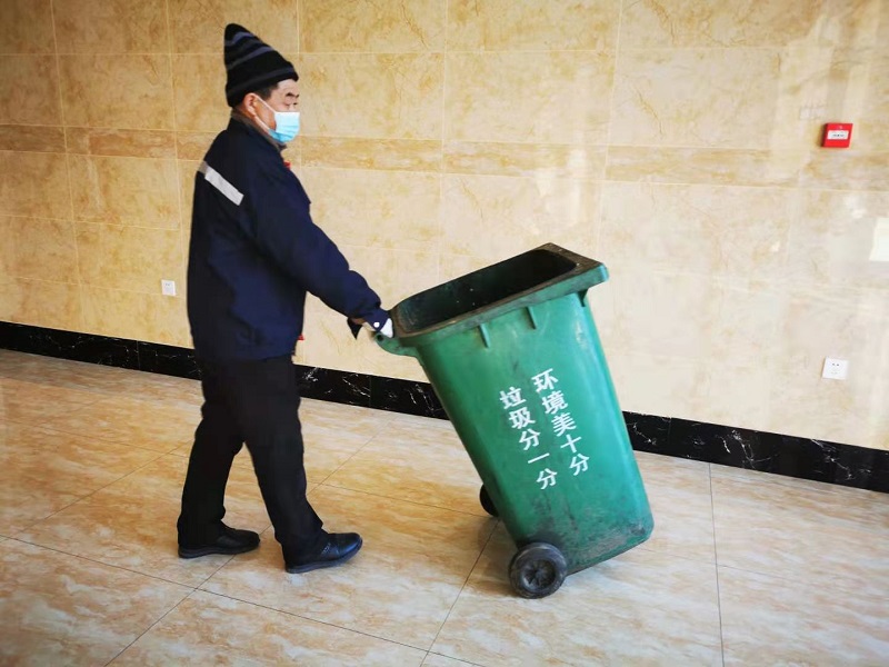 蔣永棟在收拾垃圾桶