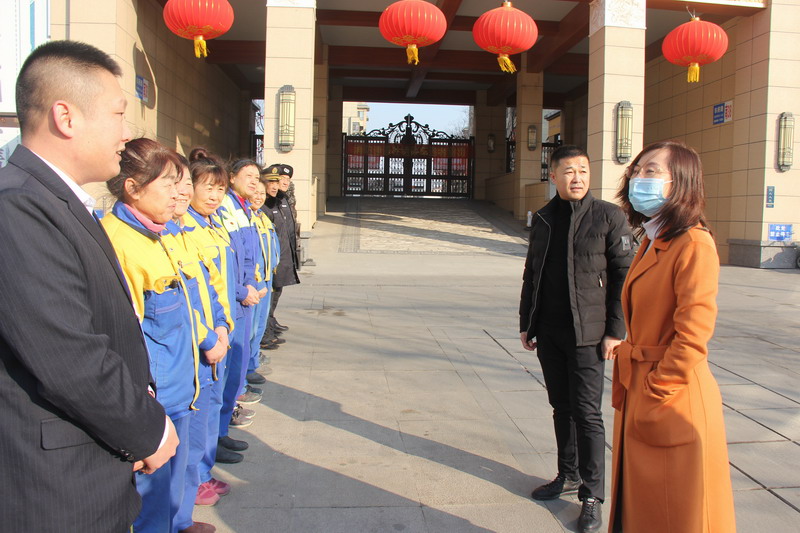 于總先后走訪營口城市公司旗下書香庭院、英倫名邸、玖樾府項目案場;酒店管理公司旗下萬豪酒店、中天國際酒店、桃花源精品酒店;中天農(nóng)貿(mào)書香庭院店、桃花源店;物業(yè)集團旗下御景華庭、桃花源、御荷苑、書香庭院、英倫名邸、中天國際小區(qū)。每到一地,于總都詳細了解單位的過節(jié)保障,以及一線員工的生活實際情況,同時深入到現(xiàn)場,與崗位上的職工對話,問寒問暖,送上貼心的關(guān)懷。