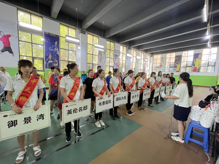 8:30分至9點是運(yùn)動員檢錄時間,物業(yè)公司細(xì)心準(zhǔn)備了接待工作,檢錄完畢物業(yè)集團(tuán)總經(jīng)理王化啟向參賽選手致辭,隨后物業(yè)集團(tuán)總經(jīng)理助理富志剛帶領(lǐng)運(yùn)動員進(jìn)行5分鐘熱身運(yùn)動,同時根據(jù)抽簽將對陣圖制作完畢,9點20分,比賽正式開始。