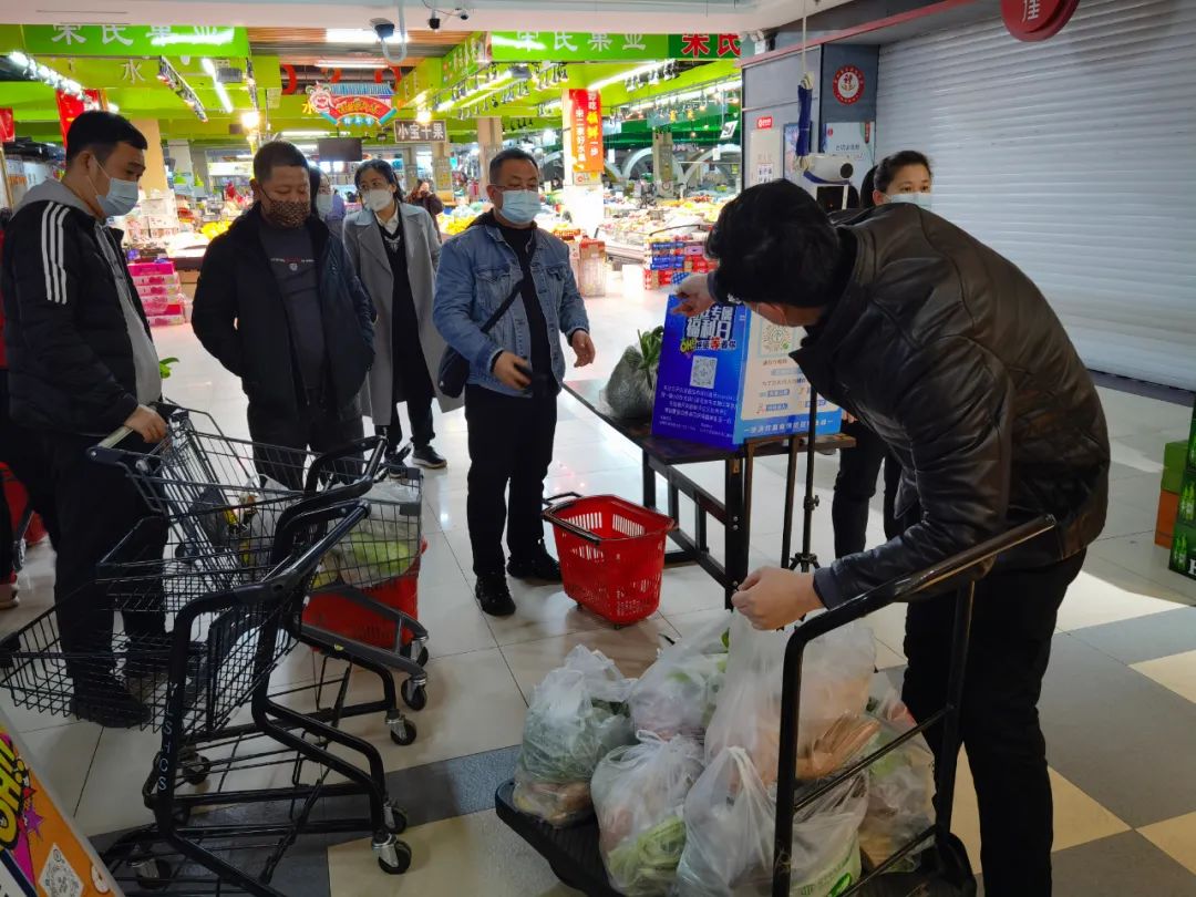 中天桃花源農(nóng)貿(mào)市場面對疫情來臨,一面安排商戶保障食品充足,一面組織人員做好進店顧客的防疫檢測,保證市場內(nèi)的安全運營。