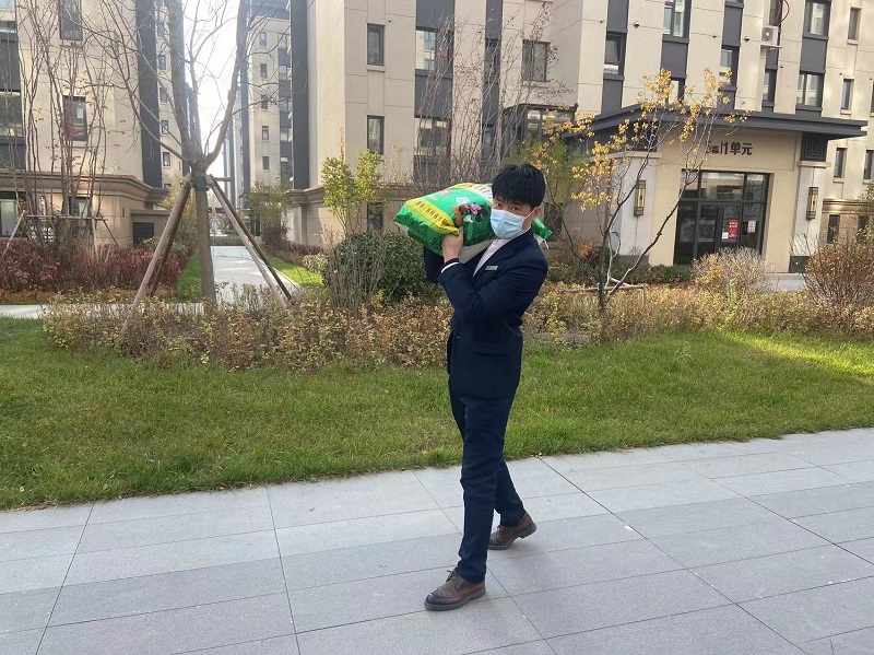 盤錦及撫順物業(yè)公司服務的幾個項目,都是新交房小區(qū),面對入住業(yè)主較少,裝修工人滯留,物業(yè)積極聯(lián)系社區(qū)做好封控人員的核酸檢測工作。由于人員緊缺,不少物業(yè)人員24小時堅守在項目,一人身兼數(shù)職,保安剛幫業(yè)主把物品送上樓,又要馬上幫助保潔人員對大堂進行消殺工作;保潔員除了園區(qū)衛(wèi)生清潔,樓道消殺,還要上門收垃圾;房管員受裝修完未入住業(yè)主委托上門澆花……一件件小事,卻大大的溫暖了業(yè)主,撫順中天首府的業(yè)主還專門在撫順交通廣播電臺上講述了中天物業(yè)的溫暖故事。為了讓業(yè)主安心居家,物業(yè)還采購蔬菜包、大米等物資免費為居家業(yè)主發(fā)放,同時為了減少聚集,物業(yè)工作人員挨家挨戶送到業(yè)主手中,讓防控有力度,抗疫有溫度。