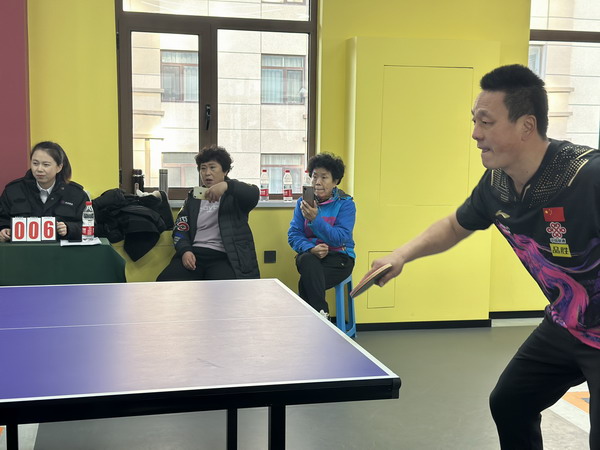 8:30分至9點是運動員檢錄時間,物業(yè)公司細心準備了接待工作,檢錄完畢物業(yè)集團領導向參賽選手致詞,隨后由此次裁判長馮老師宣布比賽規(guī)則,運動員進行5分鐘熱身運動,同時根據(jù)抽簽將對陣圖制作完畢,9點比賽正式開始。今年參賽的中業(yè)主們精神抖擻,整裝待發(fā),比賽現(xiàn)場的熱烈氛圍瞬間點燃!賽場上,參賽的業(yè)主們變換戰(zhàn)術,削球、回擋、橫拍、直拍、大力扣殺等多種戰(zhàn)術,沉著面對戰(zhàn)局,擅長進攻、巧妙防守,精彩場面層出不窮,引得現(xiàn)場觀眾發(fā)出陣陣歡呼,為精彩的對決瞬間吶喊喝彩!