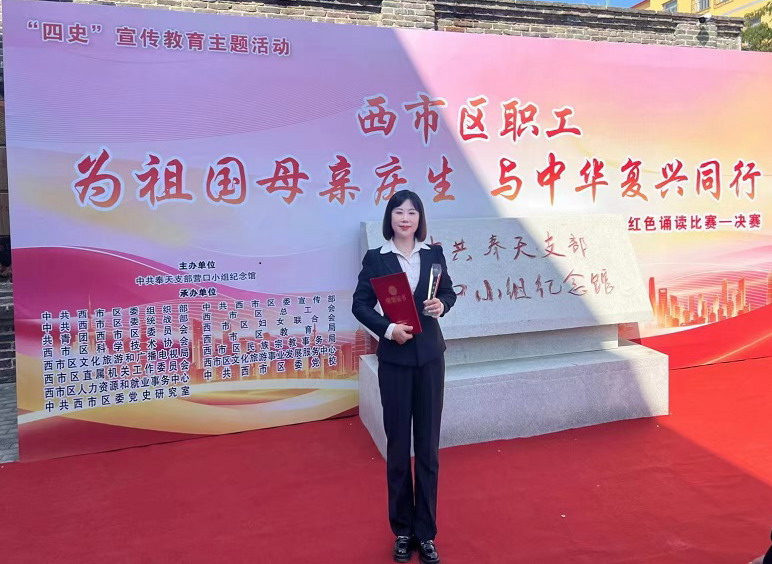 此次比賽采取誦讀紅色經(jīng)典的形式,歌頌偉大祖國,展示西市區(qū)機關(guān)干部和職工在黨的領(lǐng)導(dǎo)下跨越趕超的精神,以及在全面建設(shè)社會主義現(xiàn)代化國家新征程上闊步前行、奮力譜寫中國現(xiàn)代化精彩篇章的堅定決心。經(jīng)過前期預(yù)賽的激烈角逐,共有16個作品晉級決賽。由中天集團選送的作品——農(nóng)商公司綜合管理部經(jīng)理盧世蓮誦讀的《黨的贊歌》,在眾多作品中脫穎而出,盧經(jīng)理的誦讀展示了中天集團全體干部職工擔(dān)當(dāng)實干、拼搏向上的精神風(fēng)貌,獲得評委的一致好評,獲得三等獎。