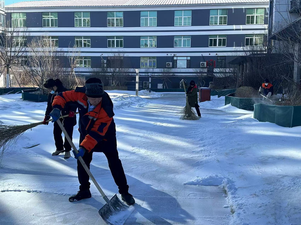 大伙兒熱火朝天、干勁十足的掃雪身影得到了許多路過業(yè)主的表揚和贊賞,而業(yè)主的肯定和贊許更增添了大家雪中奮戰(zhàn)的激情和動力。經過努力,大家終于將小區(qū)內主干道、小區(qū)門口、商網外圍的積雪清掃完畢,確保了業(yè)主出行道路安全順暢。戰(zhàn)風雪,斗嚴寒。此刻,比雪景更美的是這群物業(yè)人。雖然這場暴雪“封鎖”道路,但是鎖不住物業(yè)與業(yè)主之間的情誼。物業(yè)、業(yè)主齊心協(xié)力,攻克難關。親愛的家人們,有我們在,請您放心出行,安全回家!
