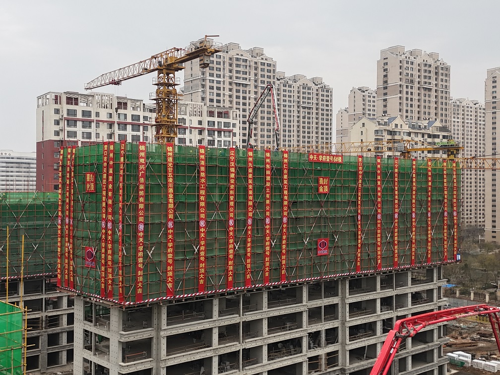 萬丈高樓平地起,眾志成城為建設(shè),經(jīng)過各參建方管理團隊的科學(xué)規(guī)劃,精細組織,務(wù)實管理,4月17日,錦州中天·學(xué)府壹號項目迎來了第一個主體樓六號樓封頂,完成了第一棟主樓封頂?shù)墓?jié)點目標,為后期工程建設(shè)奠定了堅實的基礎(chǔ)。