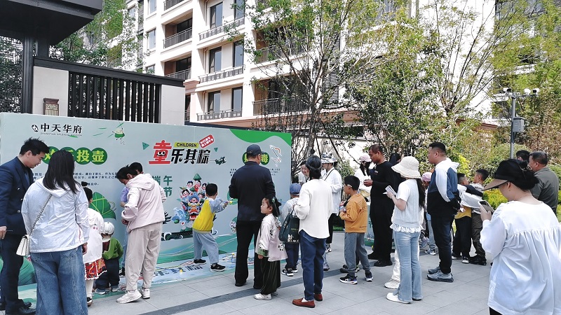 與此同時,在加推的房屋樓下還舉辦了“童樂其粽”主題活動,小業(yè)主們在這里盡情參與射五毒、投壺等傳統(tǒng)民俗游戲,增添節(jié)日氛圍。