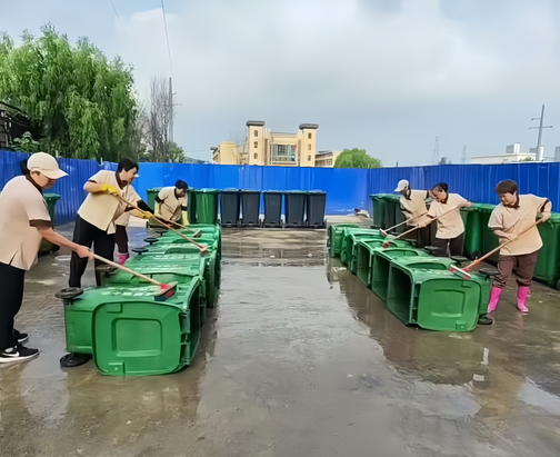 2. 嚴(yán)格消殺除味:在物理清洗后,保潔人員嚴(yán)格按照衛(wèi)生防疫要求,對清洗干凈的垃圾桶內(nèi)外表面及周邊地面噴灑高效環(huán)保的消毒藥劑和除味劑,有效殺滅細(xì)菌病毒,消除異味源頭,從根源上遏制蚊蠅滋生。