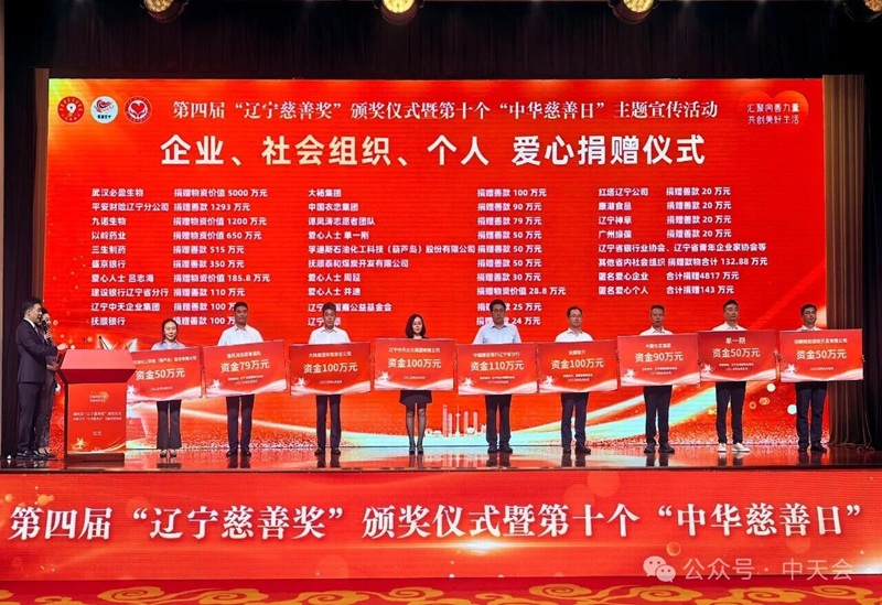 為弘揚(yáng)崇德向善、樂善好施慈善精神,營(yíng)造人人樂善、人人行善慈善氛圍,在9月5日第十個(gè)“中華慈善日”當(dāng)天上午,由遼寧省民政廳主辦的第四屆“遼寧慈善獎(jiǎng)”頒獎(jiǎng)儀式暨第十個(gè)“中華慈善日”主題宣傳活動(dòng)在沈陽(yáng)隆重舉行。遼寧省委副書記、省長(zhǎng)王新偉致辭并啟動(dòng)主題宣傳活動(dòng)。遼寧中天企業(yè)集團(tuán)獲得“遼寧慈善獎(jiǎng)”捐贈(zèng)企業(yè)殊榮,集團(tuán)總裁于洪波代表企業(yè)領(lǐng)獎(jiǎng)并捐贈(zèng)善款100萬元。