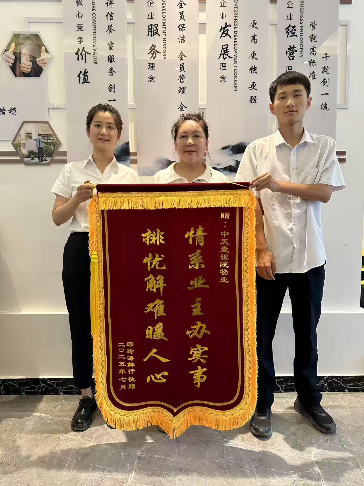 在中天·壹號(hào)院這片溫馨的家園里,中天物業(yè)用一次次暖心的服務(wù),贏得了業(yè)主們的真心贊譽(yù)。一面面錦旗,宛如璀璨的星光,照亮了物業(yè)與業(yè)主之間深厚情誼的天空,講述著那些令人感動(dòng)的故事。接下來(lái)中天物業(yè)也將繼續(xù)保持良好的工作態(tài)度,用心服務(wù)業(yè)主,用細(xì)節(jié)品質(zhì)打動(dòng)業(yè)主,讓您真切感受到中天物業(yè)人的每一份溫暖問(wèn)候和關(guān)懷!