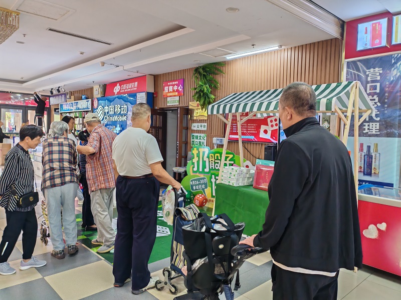 本次活動采用“三骰同擲”趣味玩法,獎項驚喜連連:擲中“豹子6”即可直接抱走精美月餅禮盒1份;搖出“豹子”可贏取實用精品防滑凳1個;收獲“順子”即可喜提時尚購物毛氈包1只;出現(xiàn)“對子”則即獲贈雨森品牌紙抽1包。規(guī)則清晰易懂,讓顧客在購物間隙盡享歡樂體驗。同時,聯(lián)合商戶推出特價商品,點燃購物熱情,讓顧客既能收獲真真切切的實惠,又能通過輕松互動提升購物體驗,傳遞濃濃節(jié)日祝福。