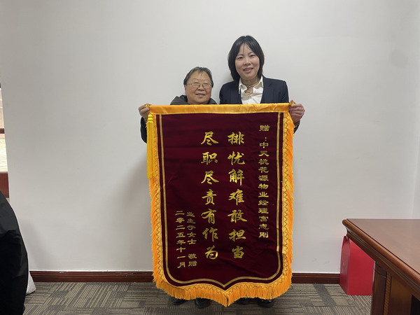 1129日,中天桃花源小區(qū)15號(hào)樓3單元2-11樓業(yè)主捧著排憂(yōu)解難敢擔(dān)當(dāng),盡職盡責(zé)有作為的錦旗來(lái)到物業(yè)辦公室,感謝中天桃花源物業(yè)經(jīng)理富志剛及物業(yè)全體員工給予高度的認(rèn)可。此前業(yè)主家突發(fā)水管破裂,物業(yè)經(jīng)理接到通知后,迅速聯(lián)系管家召集隊(duì)伍前往水管破裂現(xiàn)場(chǎng),到達(dá)現(xiàn)場(chǎng)后仔細(xì)查看破裂口,物業(yè)經(jīng)理富志剛指揮有序,在與漏水口爭(zhēng)分奪秒,及時(shí)搶修,避免了損失擴(kuò)大,后續(xù)由保潔清理滿(mǎn)是水漬的地面,也保障了業(yè)主正常用水及進(jìn)出安全。業(yè)主家老人兒女經(jīng)常不在身邊,作為物業(yè)經(jīng)理總能為老人家排憂(yōu)解難,遇到問(wèn)題,都非常耐心的給老人家處理解決,無(wú)論是設(shè)施故障還是生活中的瑣事,物業(yè)經(jīng)理富志剛總能第一時(shí)間響應(yīng),以高效務(wù)實(shí)的態(tài)度全力解決。從每一個(gè)細(xì)節(jié)都彰顯著物業(yè)經(jīng)理的責(zé)任與擔(dān)當(dāng),同時(shí)也讓業(yè)主對(duì)中天桃花源物業(yè)全體員工的辛勤的付出和努力工作加以肯定,讓業(yè)主倍感安心與溫暖,因此用一面錦旗表達(dá)最誠(chéng)摯的謝意。